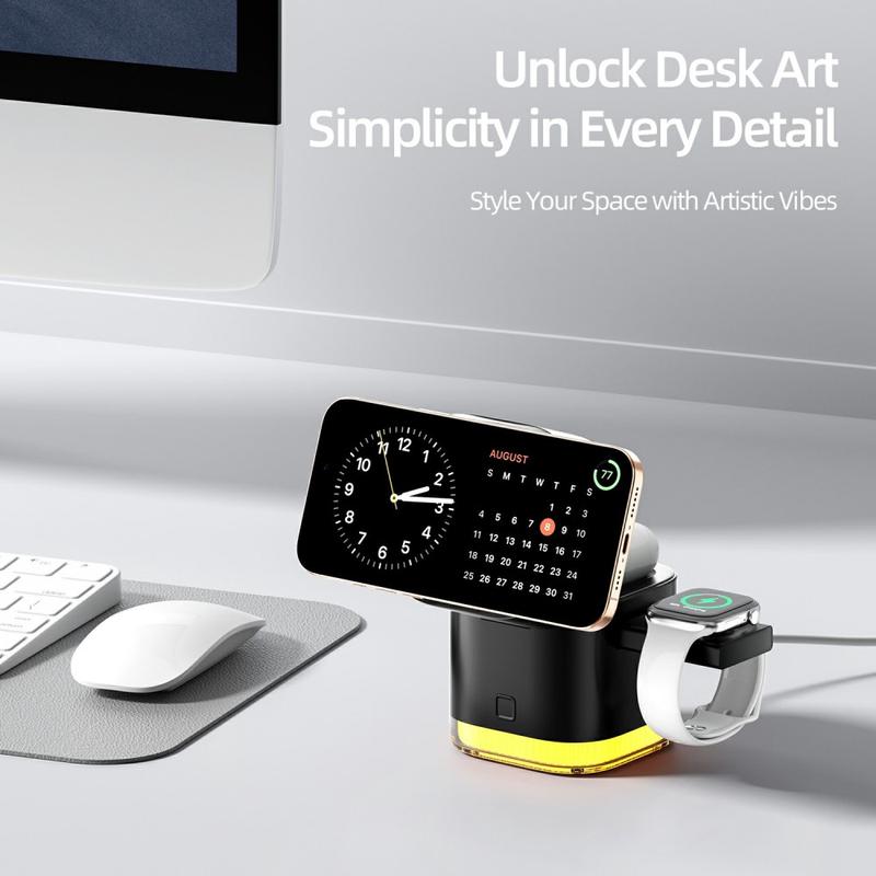 C53 Qi2 5-in-1 Foldable MagSafe Wireless Charger / 15W Fast Charging Station with Retractable USB-C Cable and LED Night Light - iOS and Android Support