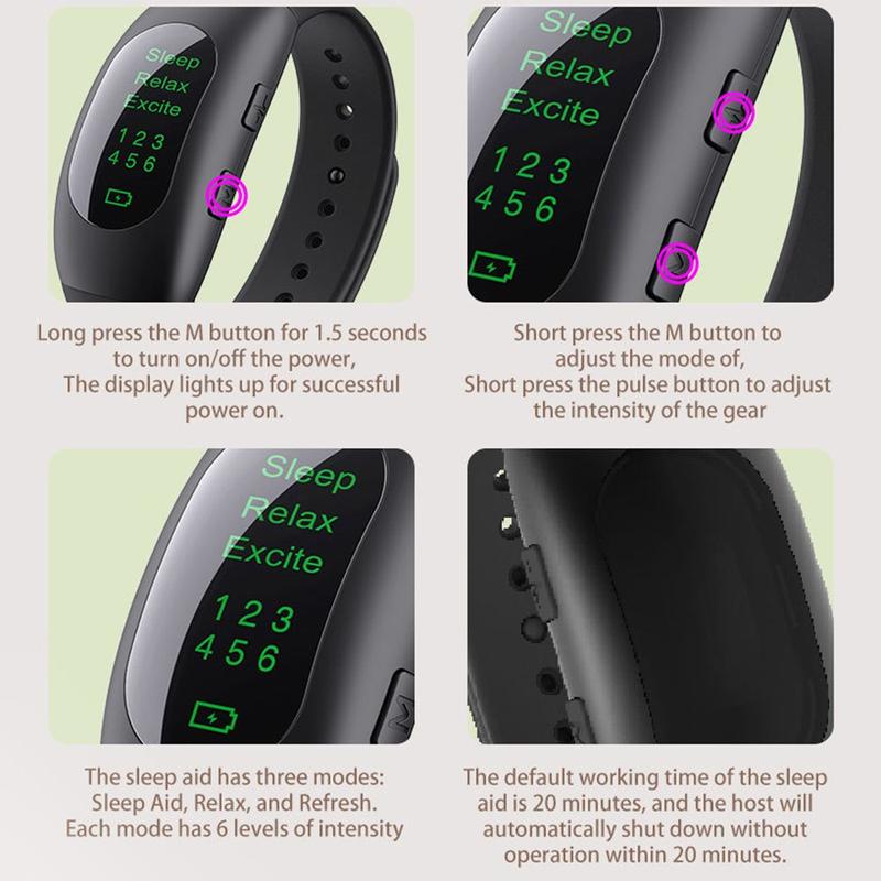 This sleep aid watch provides a modern, drug-free alternative for improving sleep and relaxation. The adjustable intensity and multiple modes let you personalize each session, while the compact wristband makes it easy to use anywhere. With its long battery life and smart timer, the device offers reliable support for better sleep habits and overall well-being.