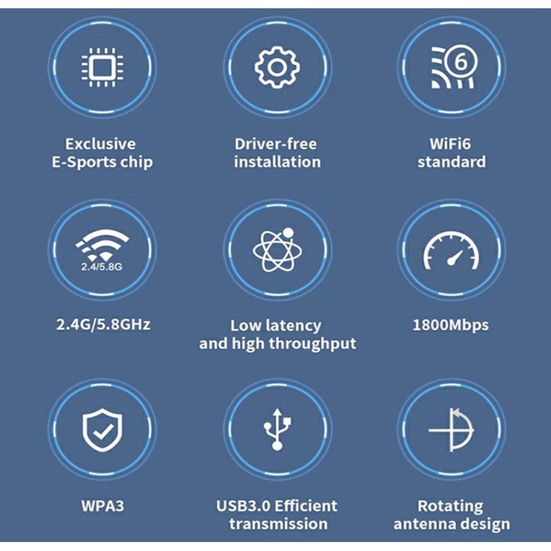 Upgrade your PC or laptop with ultra-fast and stable connectivity using the COMFAST CF-952AX V2 WiFi 6 USB Adapter. Delivering up to 1800Mbps dual-band speed, this plug-and-play adapter ensures low-latency performance and strong signal coverage — perfect for streaming, gaming, and remote work.