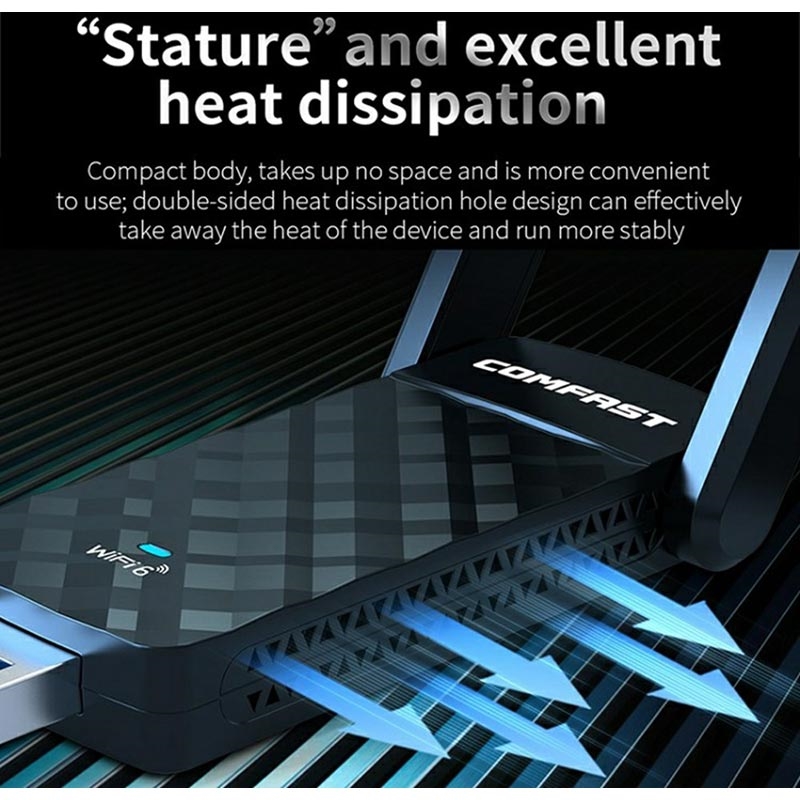 Comfast CF-952AX V2 WiFi 6 USB Adapter - 1800Mbps Dual-Band Wireless Network Card with 2 Antennas