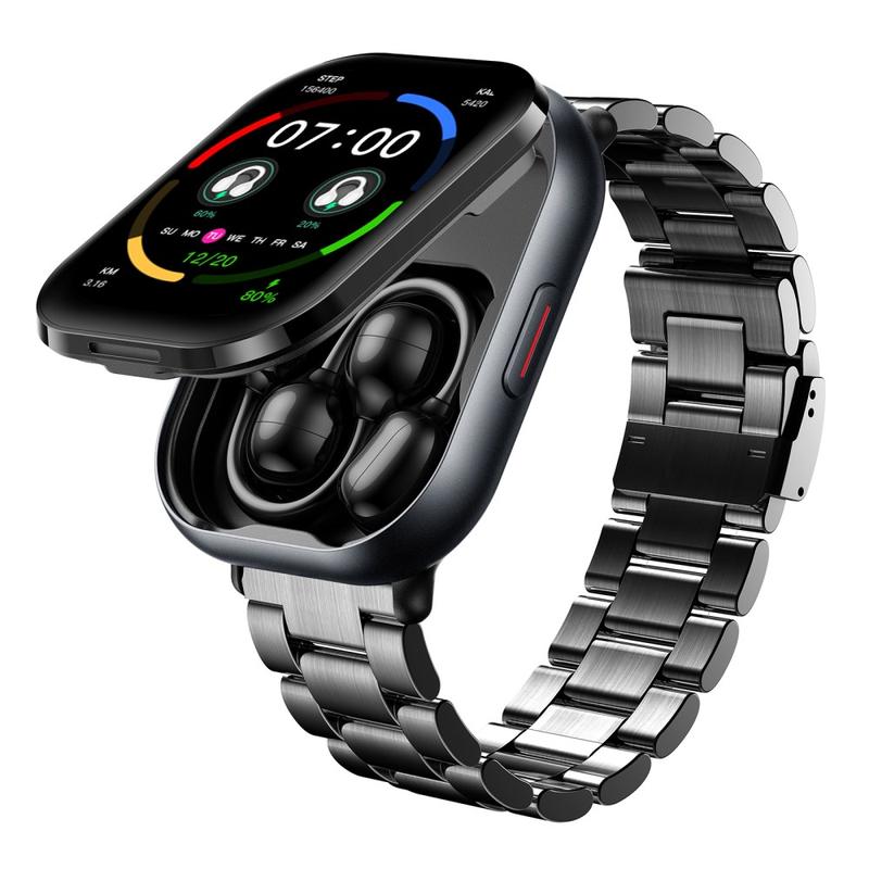 - 2-in-1 Smart Design – Combines a smartwatch and detachable Bluetooth earbuds, giving you full control of your fitness, calls, and music from one device.