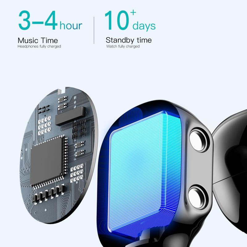- 2-in-1 Smart Design – Combines a smartwatch and detachable Bluetooth earbuds, giving you full control of your fitness, calls, and music from one device.