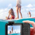 Capture adventures from both sides with the D50 waterproof action camera, built for outdoor sports, travel, and underwater fun. A dual-screen design gives you a front 1.44" IPS screen for selfies and framing, plus a larger 2.88" IPS HD rear screen for clearer playback and settings. With creative shooting tools like 20 filter effects and easy dual-screen switching, it is designed to make photos and videos more fun and shareable wherever you go.