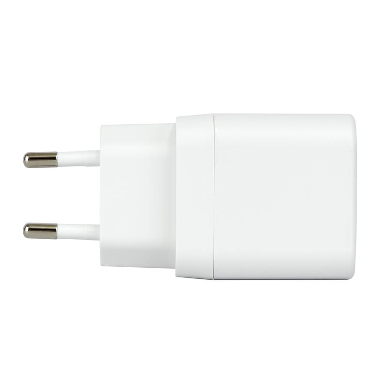 Charge your devices quickly and efficiently with the Deltaco 35W GaN wall charger. Designed for everyday use at home, in the office, or while travelling, this compact dual-port charger combines a USB-C PD port and a USB-A fast charging port in one practical unit.