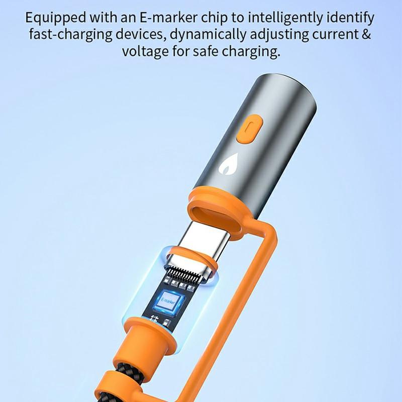 The Devia EC660 Ultra2 is a multi-function USB-C to USB-C cable built for people who want one compact tool for charging, syncing, and outdoor convenience. It supports PD 3.1 fast charging up to 240 W for compatible USB-C devices, while also adding a built-in LED lamp and an electronic lighter module for practical use during travel and camping. With an E-Marker chip for safer power management and a durable braided build, it is designed for daily carry, emergencies, and on-the-go setups.