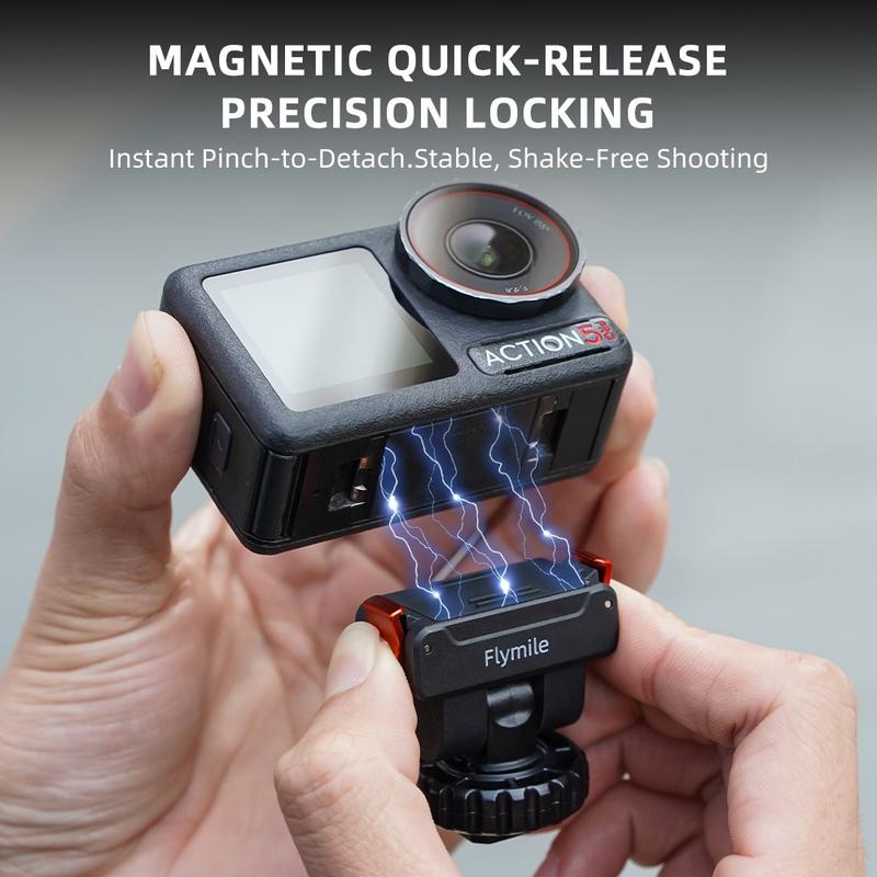 Flymile Magnetic Quick Release Mount for DJI Osmo Action 5 Pro/4/3 - Cold Shoe Adapter with 180 Tilt & 1/4" Thread