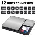 Experience professional accuracy and versatility with the dual platform digital kitchen scale, designed for both heavy-duty and delicate measurements. With two independent weighing platforms — one large and one micro-precision — this scale is perfect for everything from baking ingredients to weighing jewelry, powders, or spices.