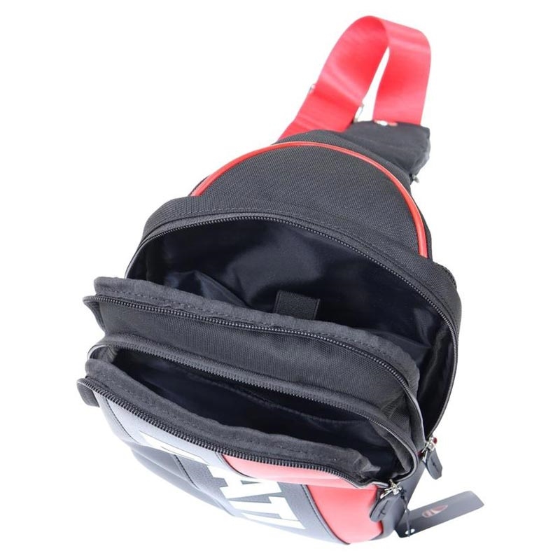 - Sporty Ducati sling bag design with bold logo and colour scheme
