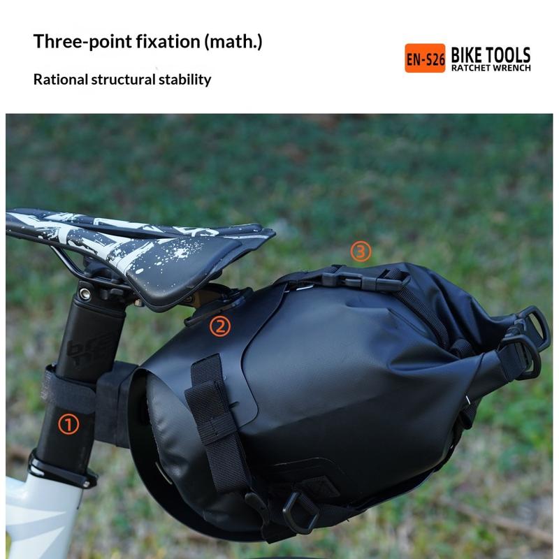 Its three-point fixing structure is designed to improve stability by distributing weight more evenly and helping keep the bag in place during riding. This makes it especially useful when carrying tools, daily essentials, cycling accessories, or light travel gear on rough roads or longer routes. The quick-release clip system also allows fast installation and removal without needing complicated setup, which adds everyday convenience for regular riders.