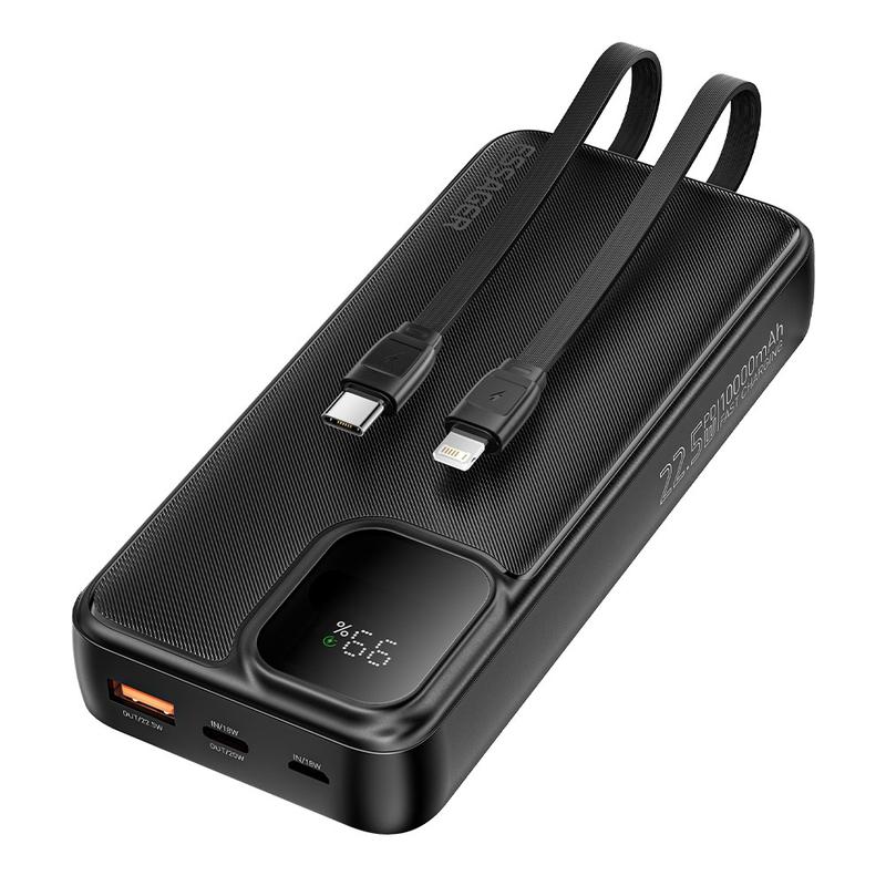 Essager 10000mAh Digital Display Power Bank with Type-C & Lightning Cables, 22.5W Fast Charging