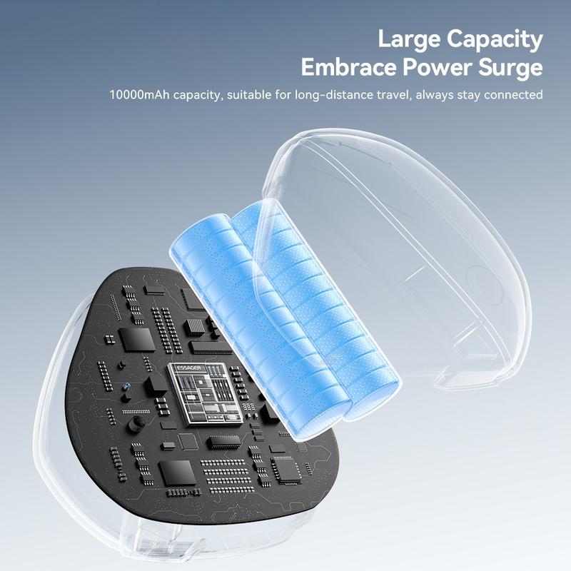 The ESSAGER 10000mAh power bank delivers reliable on-the-go charging with a total capacity of 10000mAh and a rated output of approximately 5500mAh—ideal for topping up smartphones, earbuds, and small devices throughout the day.