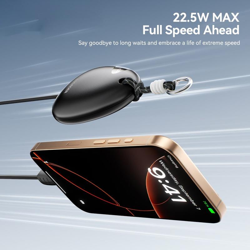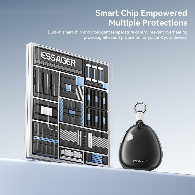 The ESSAGER 10000mAh Fast Charging Power Bank offers reliable, on-the-go power with a built-in retractable 70cm Type-C cable. Designed for travel, commuting and outdoor use, it delivers up to 22.5W fast charging while remaining compact, lightweight and easy to carry thanks to its integrated carabiner clip.
