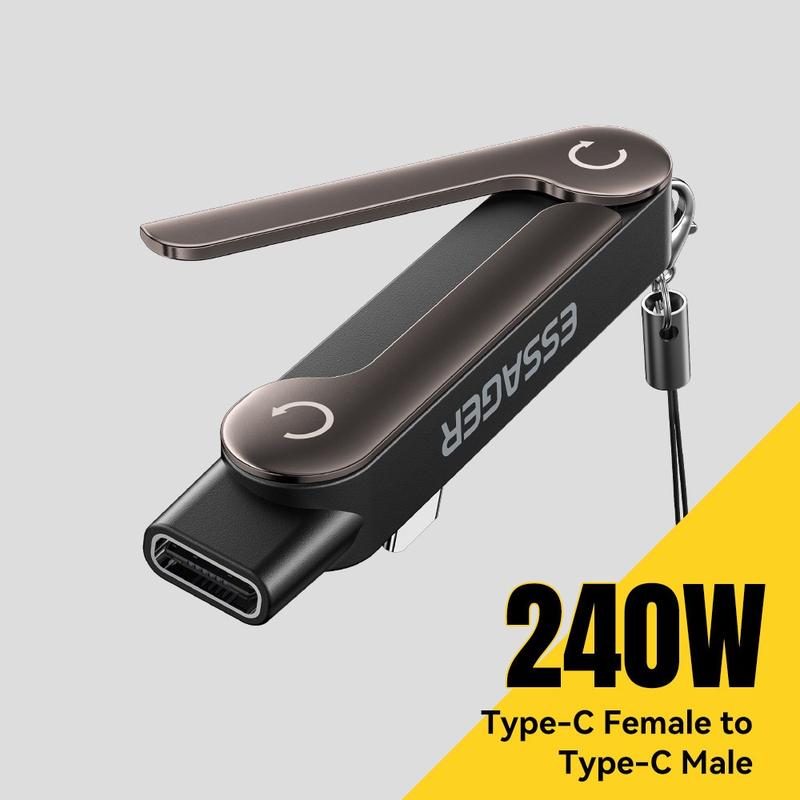 The ESSAGER USB-C female to USB-C male adapter is a smart 2-in-1 accessory that combines high-speed connectivity with a foldable phone stand. Designed for everyday convenience, it supports up to 240W charging and 40Gbps data transfer while the 90 L-shape design helps create a more comfortable cable angle during use. Compact, lightweight and easy to carry, it is a practical solution for work, travel and daily charging setups.