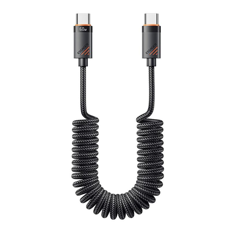 Charge and sync your devices more conveniently with the Essager Spring USB-C to USB-C cable. Designed with a flexible coiled spring structure, this cable stretches when needed and retracts neatly for easier storage, helping reduce cable clutter on desks, in cars, or inside travel bags. With support for up to 60W Power Delivery charging, it can quickly power compatible smartphones, tablets, and USB-C laptops while also supporting reliable data transfer.