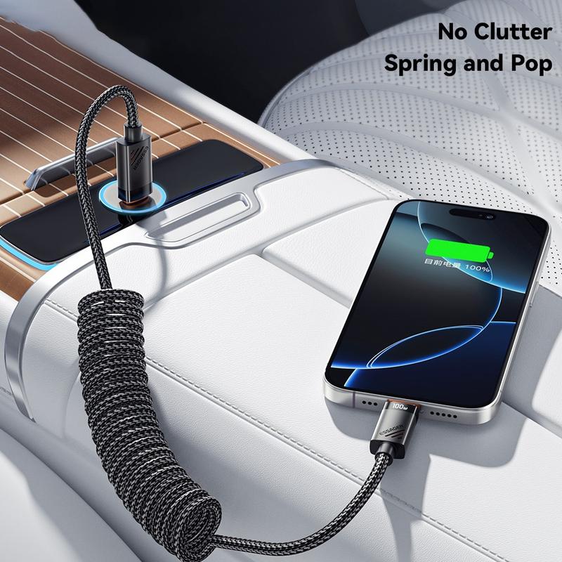 The ESSAGER spring cable combines fast charging, durability, and a practical coiled design that helps keep cables organized. It is ideal for users who want a reliable USB-C cable that stretches when needed but stays compact when not in use, making it especially convenient for car use and portable charging setups.