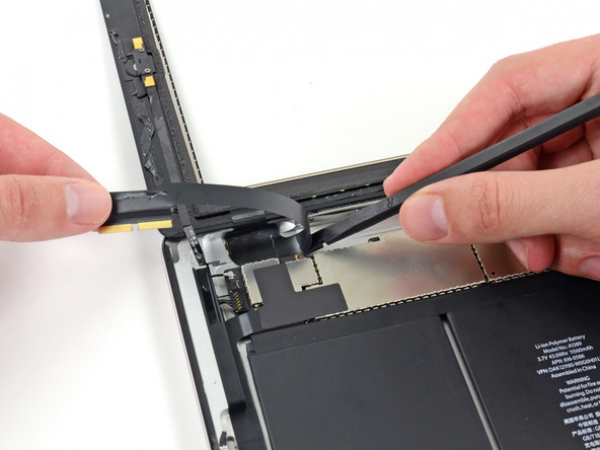 Take out the digitizer ribbon cable out of its sockets on the logic board.