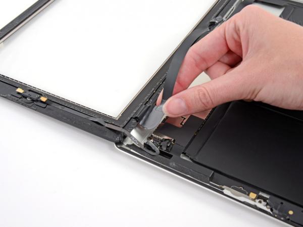 Take the digitizer ribbon cable out of its niche in the aluminum frame. Do this with your fingers.