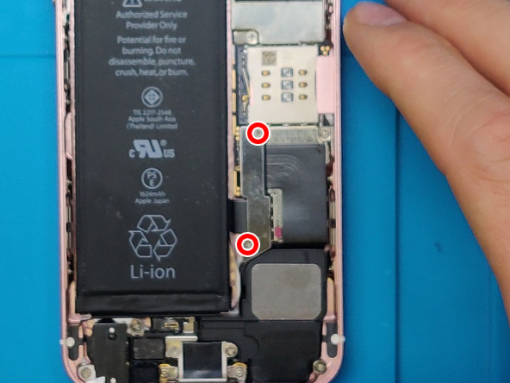 The two Phillips #000 1.6 mm screws that secure the battery connector bracket to the mother board should be removed.