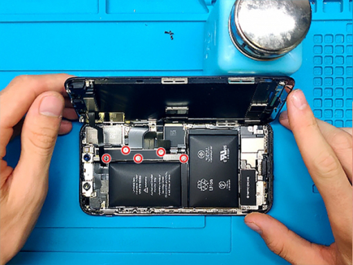 - The two pentalobe screws at the phone's bottom edge should be removed. - Beginning at the bottom, slowly move the spudger around the edges. - Twist the tool to increase the gap between the rear case and the display. - You run the risk of damaging the plastic clips holding its LCD in place if you start pulling from the top edge. -The clips that hold the back case and the display are removed by detaching the display assembly from the top edge of the device. - Pull the display up and to the left, like the back cover of a book, to open the phone. - It is still early to disengage the display completely several ribbon cables still attach it to the phone's logic board.