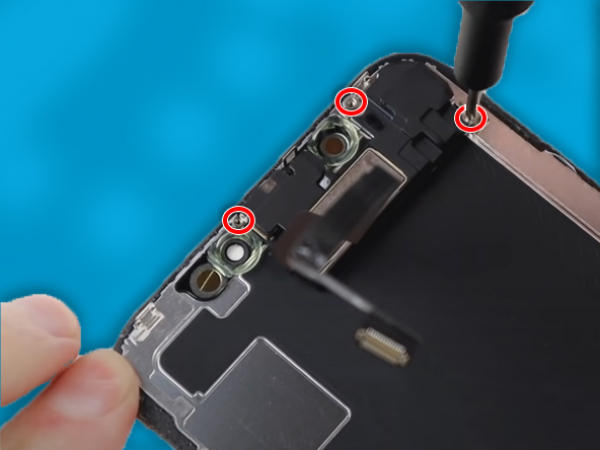 - Remove five Y000 tri-point screws that secure the logic board connector bracket. - Remove the connector bracket gently. - Disconnect the front panel sensor array connector. - Pry the OLED panel cable connector using your fingernail or the spudger. -Use the point of a spudger to pry the digitizer cable connector up. - The sensor arrey cable on the front panel is lightly adhered in place. -Gently lift the cable until the adhesive separates. - The phone's display assembly should now be removed.