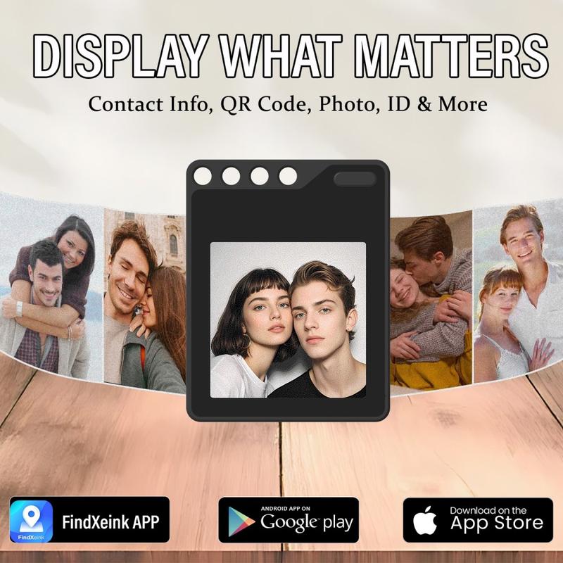 - Customizable screen supports photos, text, contact details and QR codes via the FindXeink app