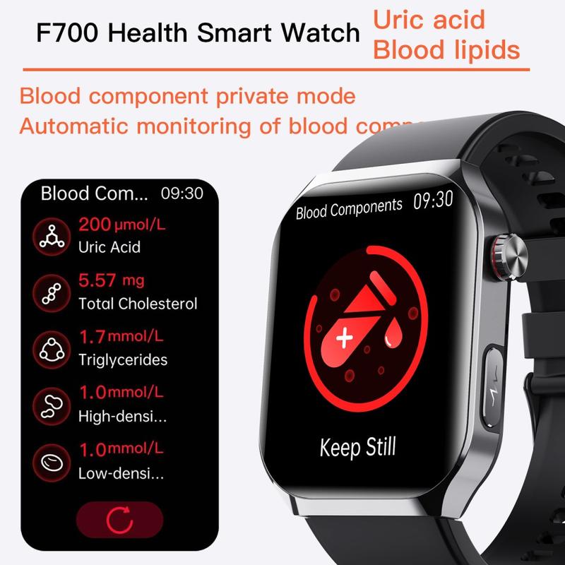 The F700 Smart Watch is designed for users who want complete health monitoring, safety features, and fitness tracking in one stylish wristwatch. Equipped with ECG, body composition analysis, HRV reporting, and red light blood oxygen monitoring, it offers a professional-grade overview of your health. Advanced safety tools like SOS and fall detection provide extra peace of mind, while scientific sleep tracking and stress management help you maintain balance every day. With 52 sports modes, customizable watch faces, and Bluetooth 5.3 connectivity, the F700 is as versatile as it is powerful - making it the perfect partner for both active lifestyles and everyday wear.