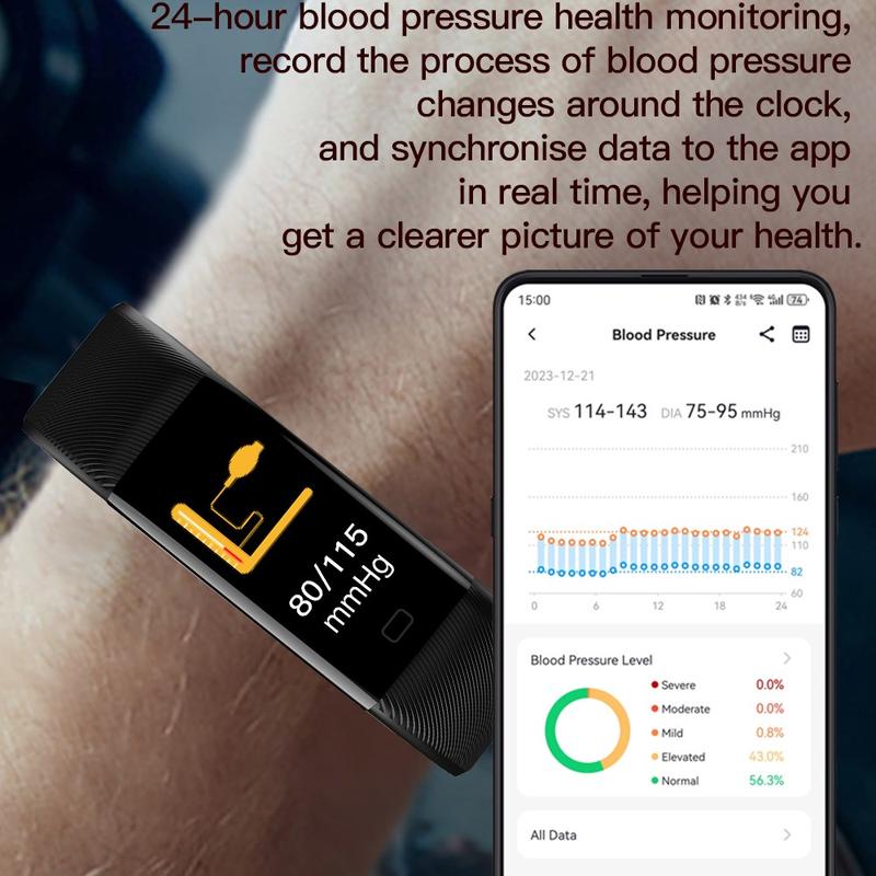 The F71 Smart Bracelet offers an all-in-one health tracking experience with heart rate, blood oxygen (SpO₂), blood pressure and body temperature monitoring. Perfect for keeping an eye on your well-being throughout the day.