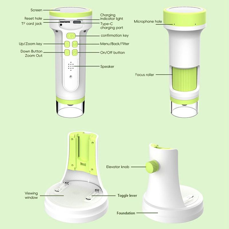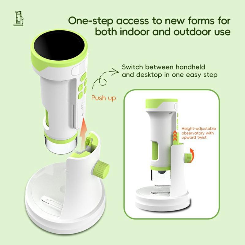 The F9 digital microscope is a compact and educational device designed to introduce children and beginners to the microscopic world in a fun and accessible way. With dual handheld and desktop use, a clear round IPS display, and high-resolution photo and video recording, it allows young explorers to observe, capture, and learn wherever curiosity strikes—at home, in school, or outdoors.