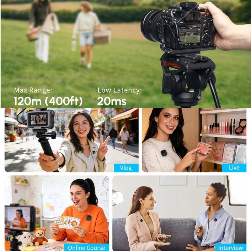 Wireless lavalier microphone systems are popular because they allow speakers to move more freely while keeping audio clearer than a built-in phone or camera microphone. Dual-transmitter kits are especially useful for interviews and collaborative recordings because both voices can be captured more evenly. Charging-case systems also add practical value by making transport easier and helping creators keep microphones powered between shoots.
