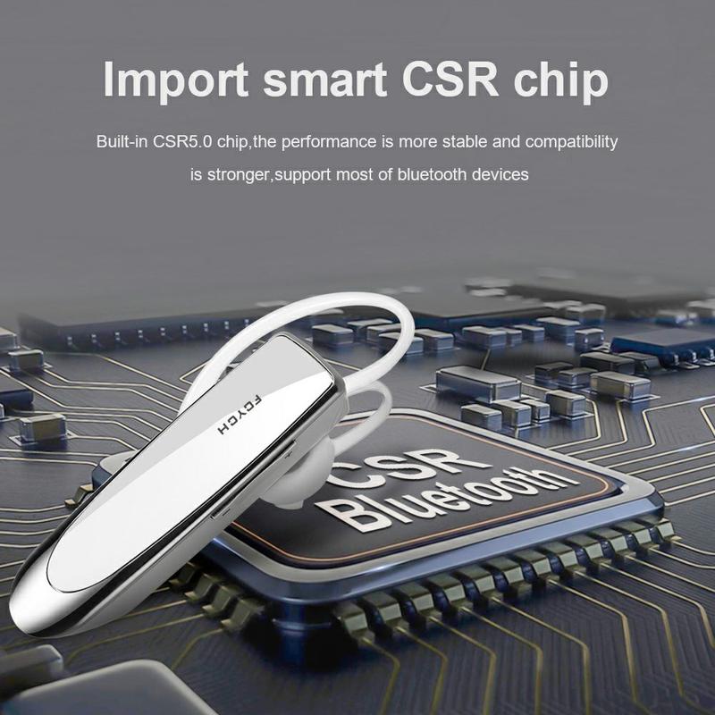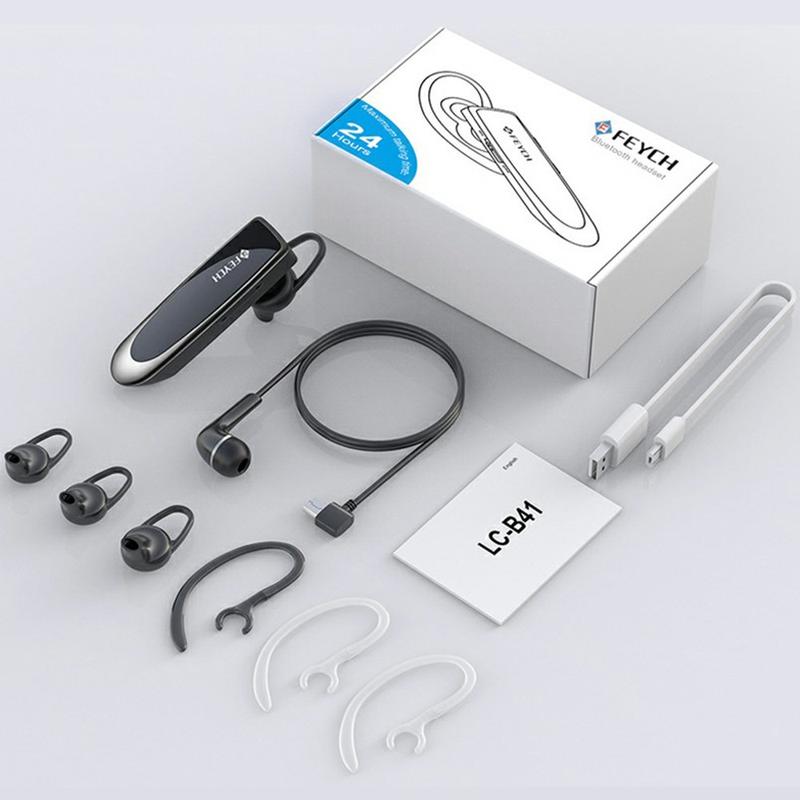 Feych Single-Ear Bluetooth Headset (Bluetooth 5.0) - CVC 6.0 Noise Reduction, Dual Device Connection, 24h Talk Time