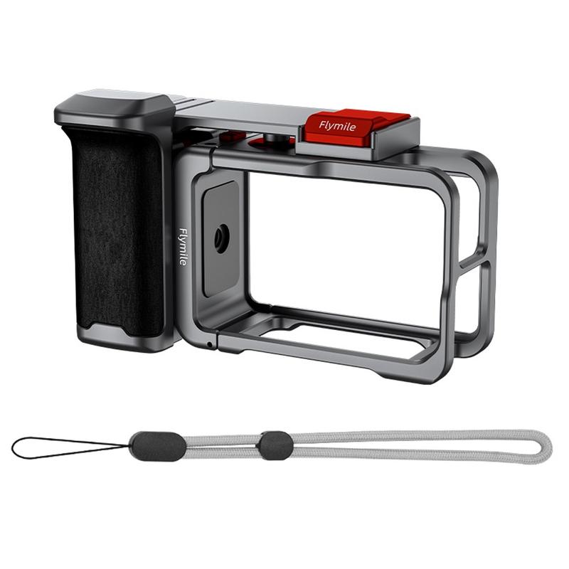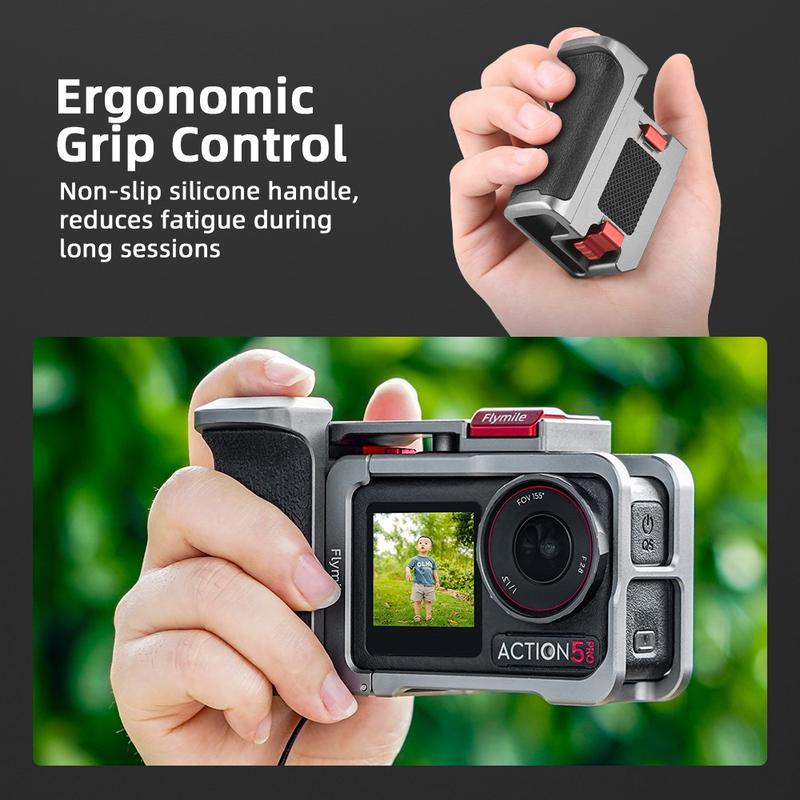 Flymile Action Camera Handle and Cage Set for DJI Osmo Action 5 Pro/4/3 - Shutter Button Grip with Cold Shoe and Wrist Strap