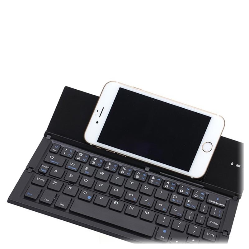 Your phone or tablet will have never-before-seen ultility with this foldable Bluetooth keyboard and desktop holder.