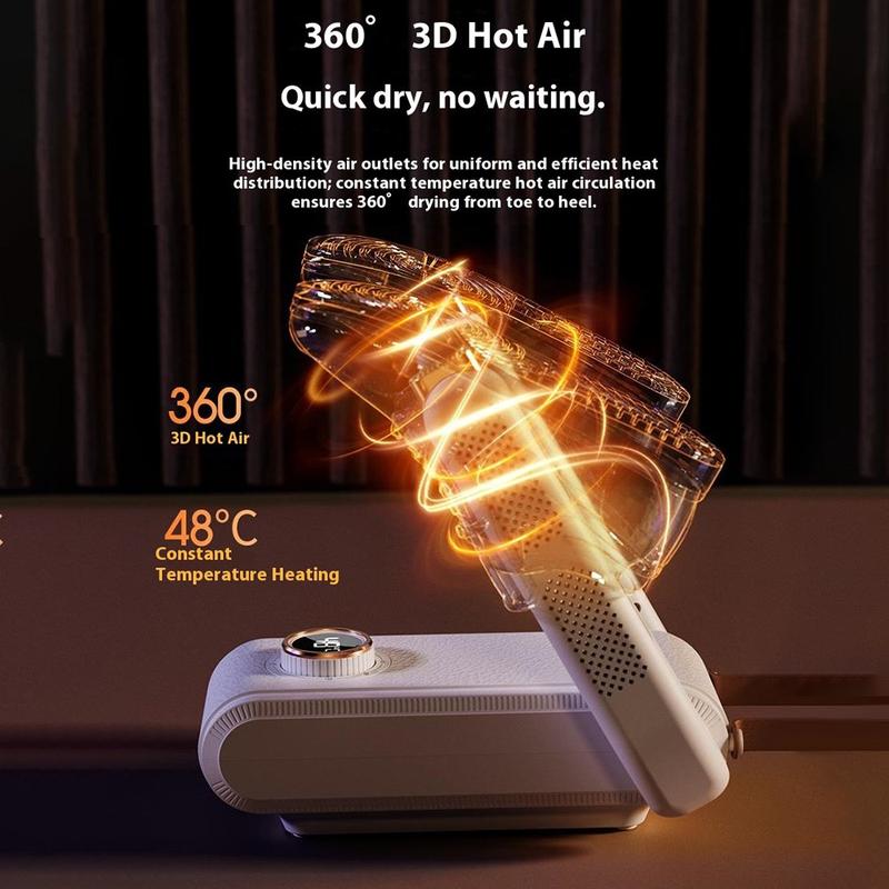 - Dual arms with extended air outlets suitable for socks, sneakers, and boots