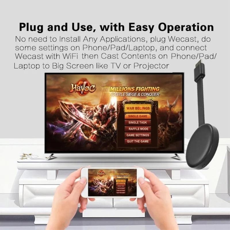 - Plug & Play Operation - Simple to set up — just plug the dongle into your HDMI port, power it via USB, and connect through WiFi.