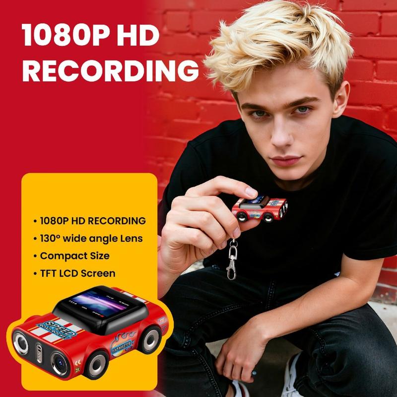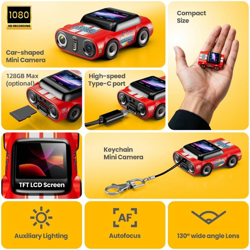 - Mini thumb-sized wearable camera with car-shaped keychain design