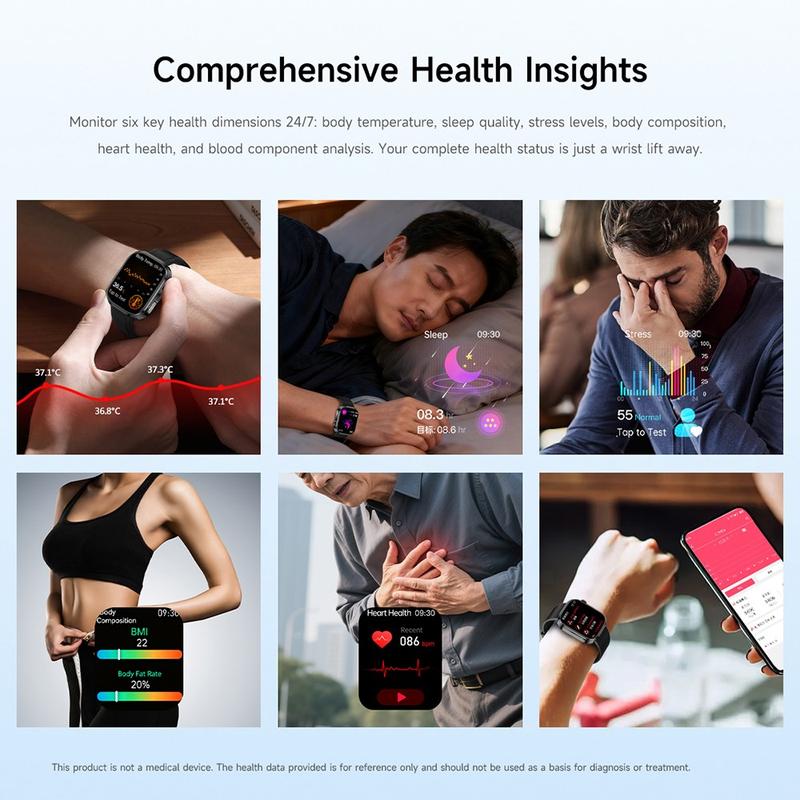 The GE52 smart watch combines advanced health monitoring with modern convenience, offering ECG measurement, heart rate tracking, blood oxygen detection, temperature monitoring and more—all from your wrist. Its large 1.88-inch HD display provides crisp, vibrant visuals that surpass traditional 1.7-inch screens, making daily use clearer and more enjoyable.