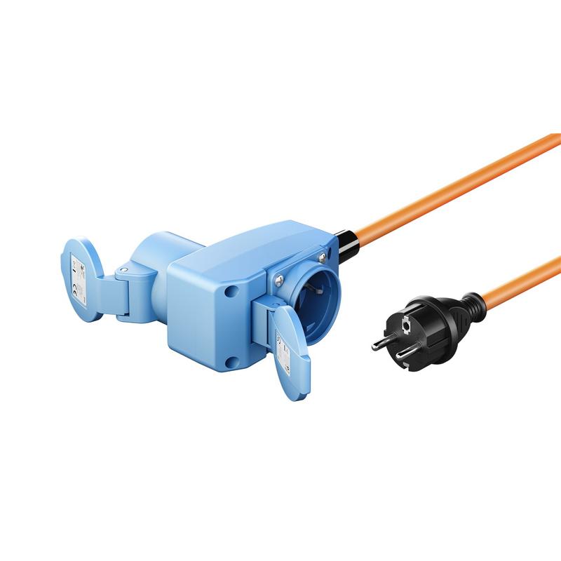 Goobay CEE Adapter Cable 1.5 m – Safety Plug (Type E/F) to 90° CEE Coupler with Safety Socket, IP44 Outdoor Power Cable