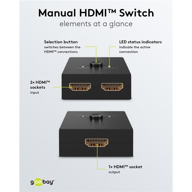 Manuell HDMI™-omkopplare 2 till 1 (4K @ 30 Hz)