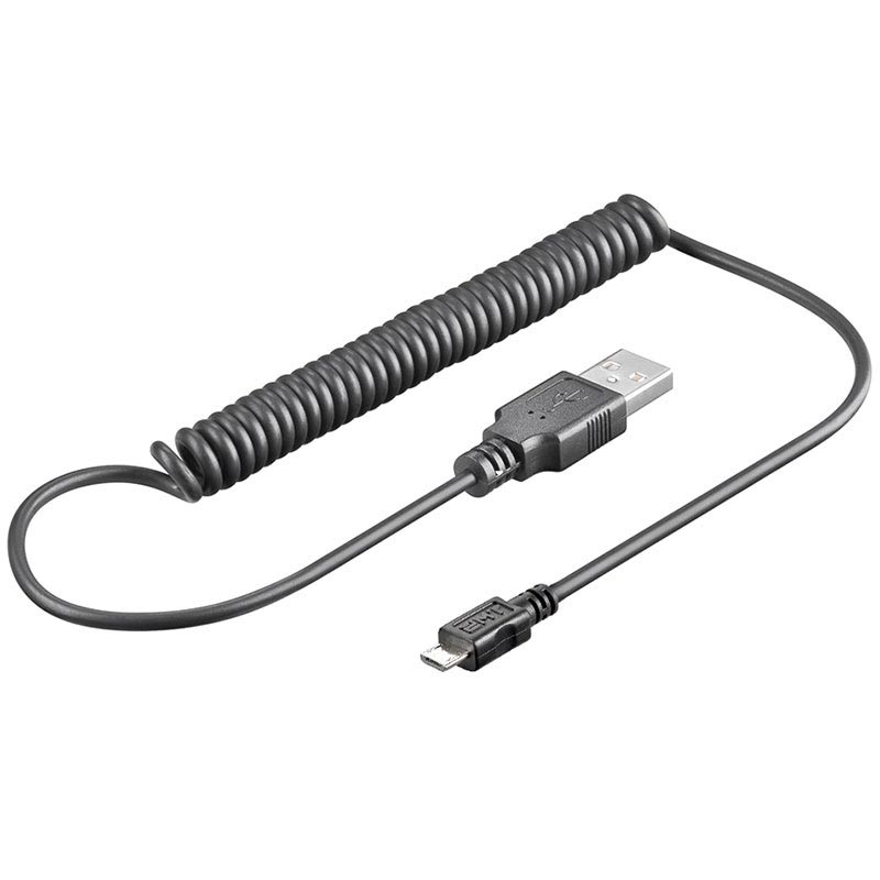 Spiral microUSB cable for optimal lenght without tangling. Use it to charge or synchronize your device.