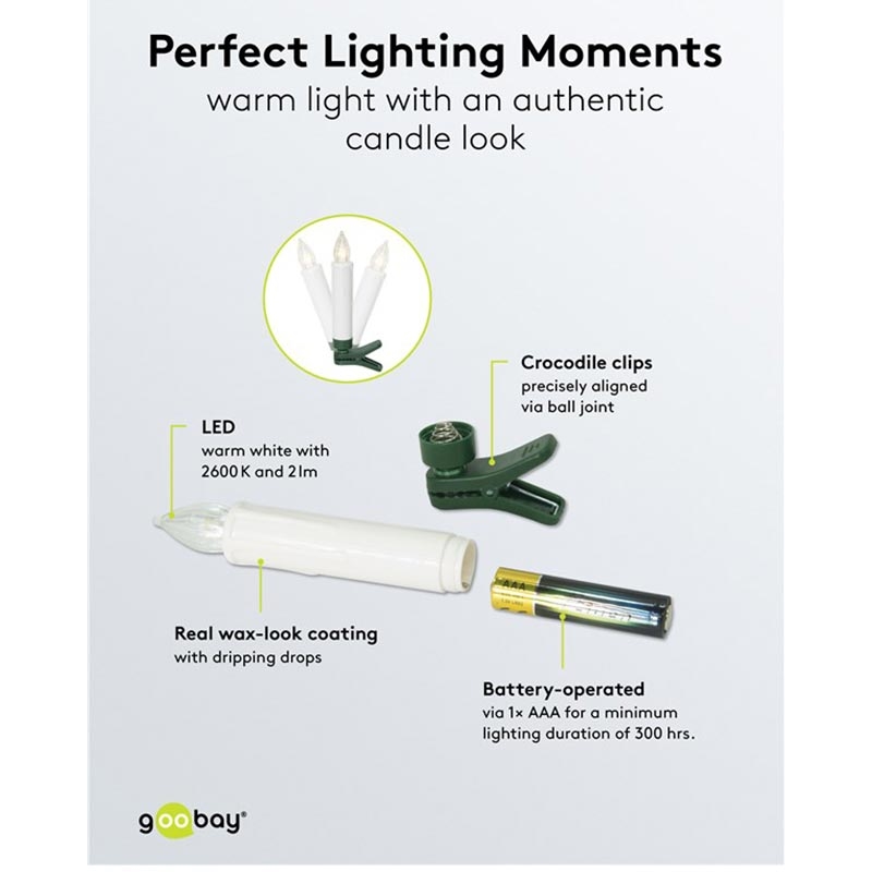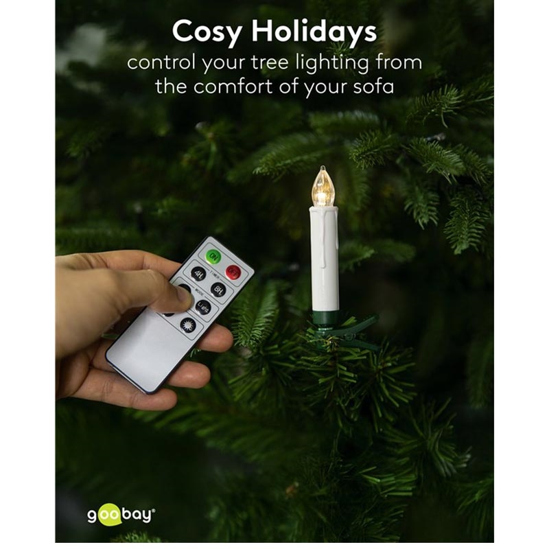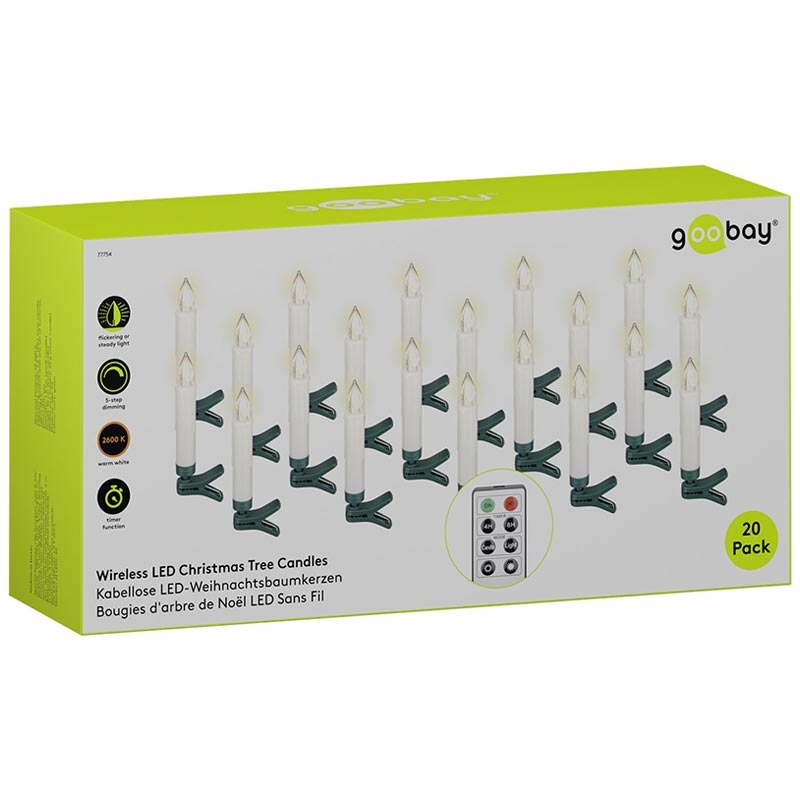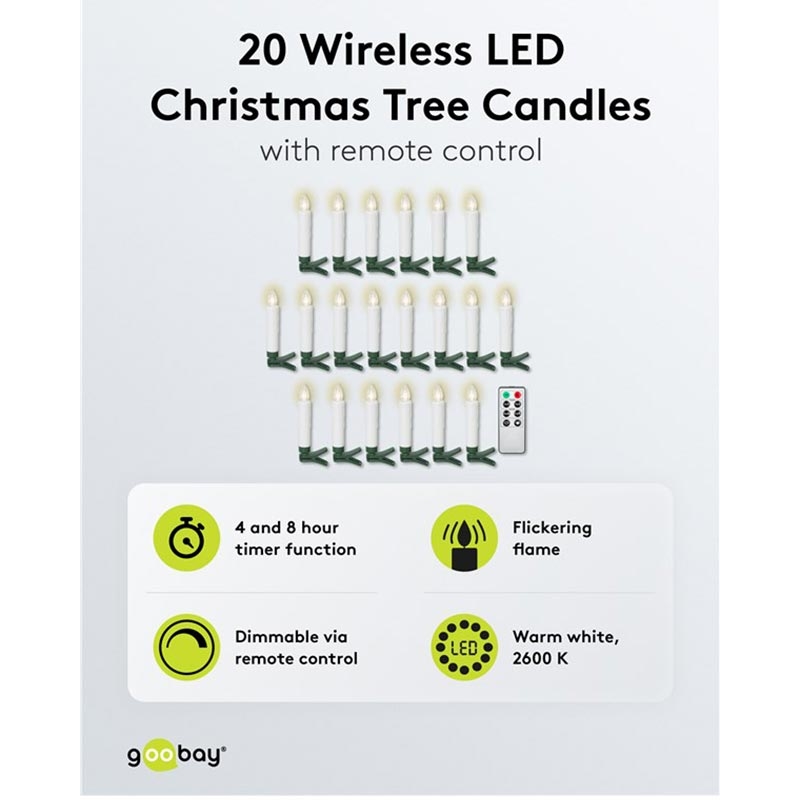 Goobay Wireless LED Christmas Tree Candle Set - 20 Dimmable Candles with Clips, Remote Control & Timer (2600 K)