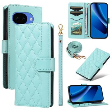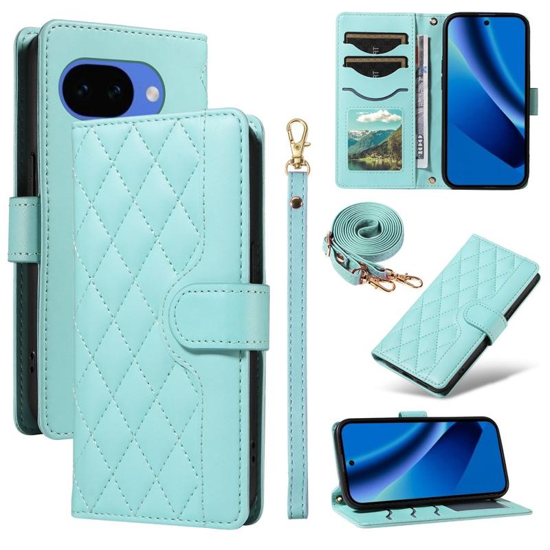 Luxury Quilted Wallet Case with Shoulder & Wrist Strap for Google Pixel 10a - Rhombus Pattern Protective Cover