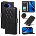 Luxury Quilted Wallet Case with Shoulder & Wrist Strap for Google Pixel 10a - Rhombus Pattern Protective Cover