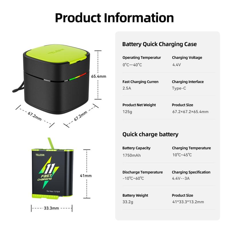 TELESIN GP-FCK-B11 2-Slot Battery Charger & Storage Box for GoPro Hero 11 – Fast & Reliable Power Solution