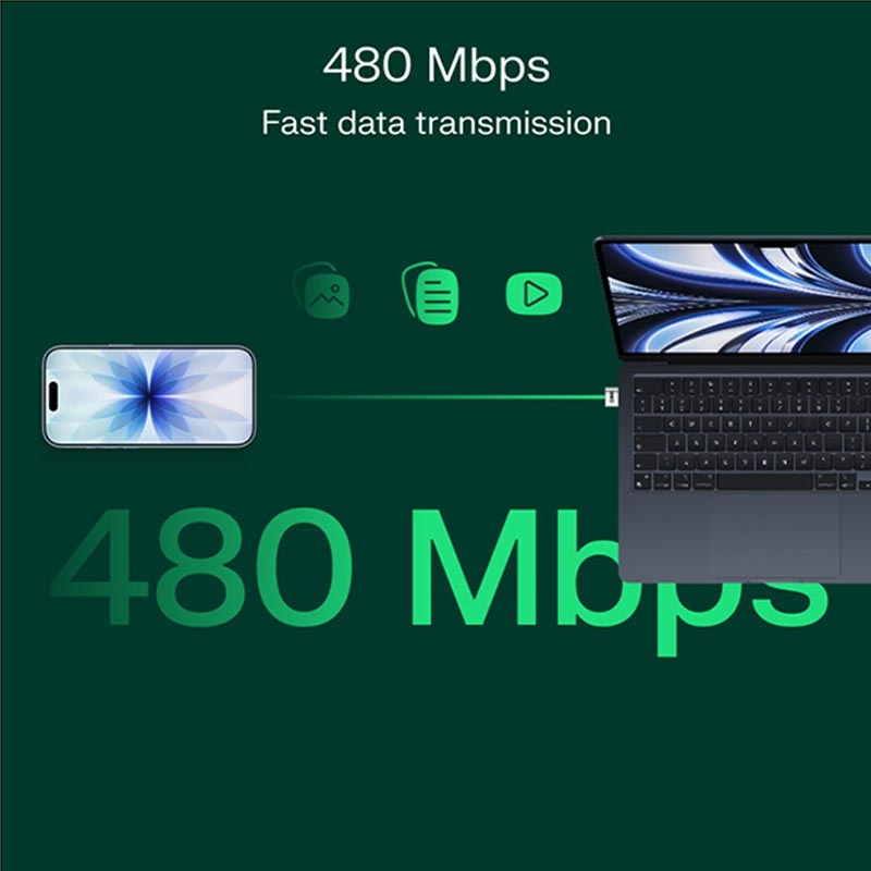- Fast Data Transfer - Supports 480Mbps transfer speed, enabling quick and efficient file transfers between devices such as smartphones, tablets, and laptops.