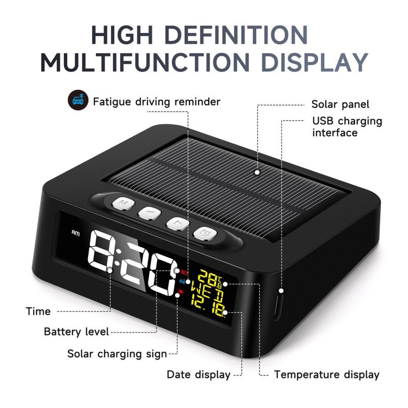 You get a portable clock that keeps running with solar power or USB Type-C charging, making it reliable at home and on the move. The fatigue reminder adds a practical safety benefit for drivers.