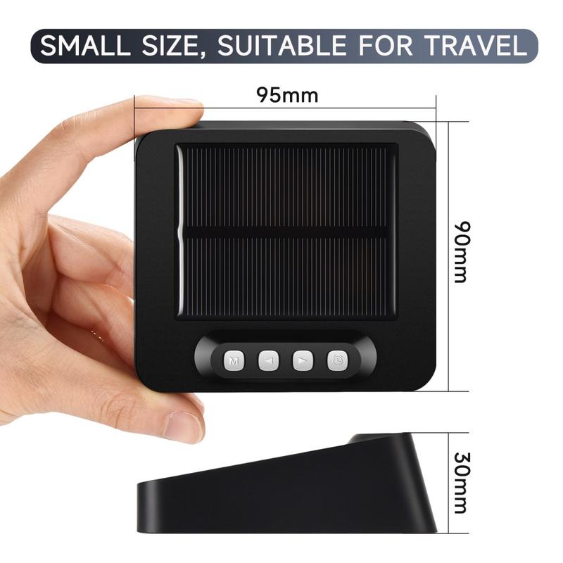 The GS-301 solar powered LED digital alarm clock is a compact, travel-friendly clock that shows time, date, weekday, and temperature on a clear high-definition LED screen. It supports dual power (solar charging plus USB Type-C charging) for dependable use in different environments, from the car to the bedside table or campsite. With dual alarms, 12/24-hour format switching, a 5-minute snooze, and a built-in fatigue driving reminder, it’s a smart choice for everyday routines and long journeys.