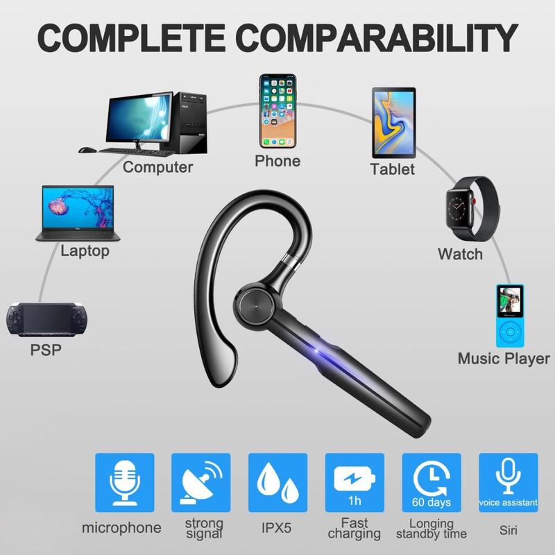 Stay focused and hands-free all day with the H03 single-ear business Bluetooth earphone. Designed for long calls and busy schedules, it features a rotating ear-hook system (180 hook rotation + 270 body rotation) so you can wear it comfortably on either ear and quickly adjust the angle to your preference. Dual noise-cancelling microphones help keep your voice clearer in meetings, commutes, and office environments, while Bluetooth-compatible 5.3 provides a stable connection up to 10 m for reliable everyday use.