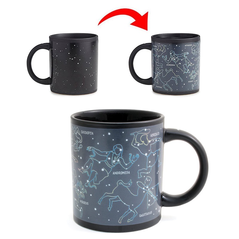 Get your drink in style with these heat-activated mugs that change when filled with hot liquid. You have to love a mug that magically changes in front of your eyes when you pour hot coffee or tea. As your coffee cools off, your mug turns back to the previous design. This heat-sensitive mug is not only a great way to start the day but is also an excellent way for you to tell whether or not that cup of coffee you made has cooled down or not.