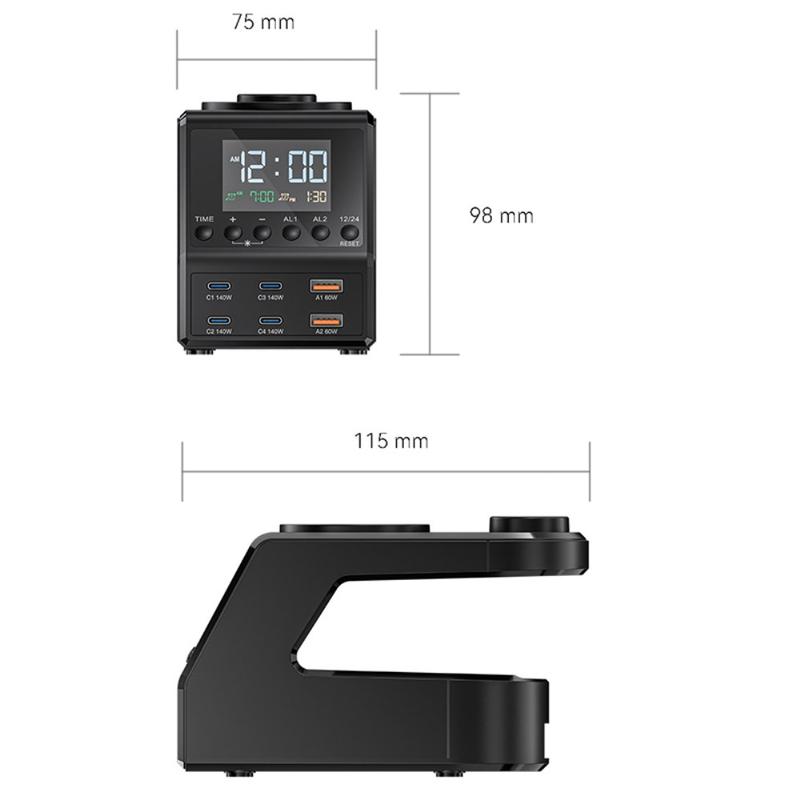 HHW H688 6-in-1 Wireless Charging Station with Alarm Clock - 240W Multi-Port Charger with 15 W Wireless Output and EU Plug