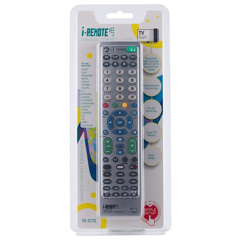 The i-Remote TR577E delivers universal compatibility, easy operation, reliable range and durable build quality—making it an excellent, budget-friendly replacement remote control for any television.